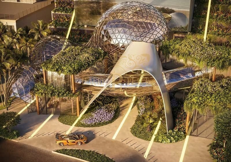 Mansões suspensas: 18 unidades exclusivas, com áreas entre 420 m² e 563 m², oferecendo privacidade e vistas deslumbrantes.