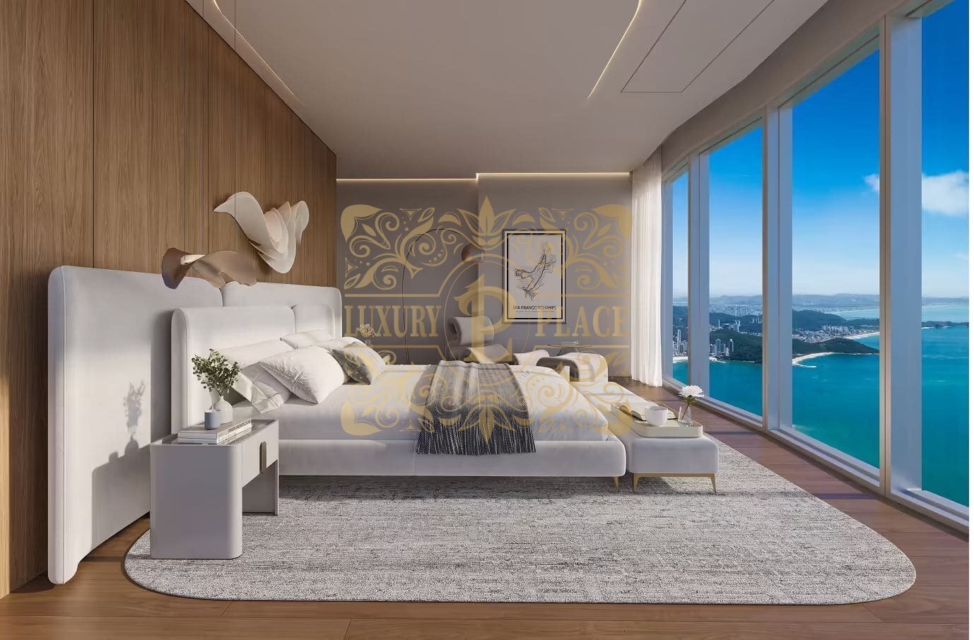 Apartamentos: Variando de 301 m² a 420 m², com 5 suítes, 4 vagas de garagem e elevador privativo.