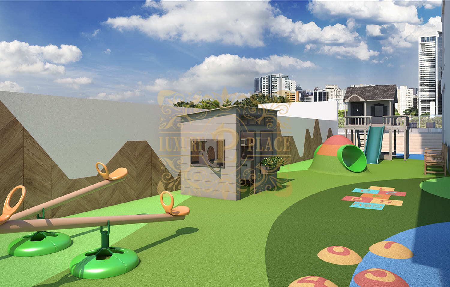Sala de jogos, brinquedoteca e playground.